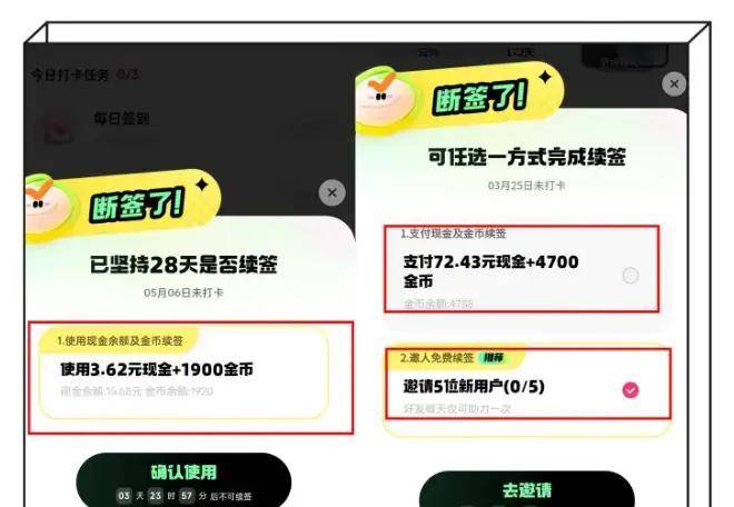 所以第一次断签千万别不当回事,次数多了补签难度直接拉满,一旦完不成要求,之前的签到天数直接清零,非常不划算。