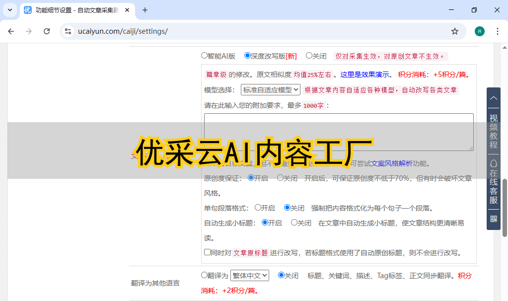 操作:开启“文章改写”功能,并选择 “深度改写版”。