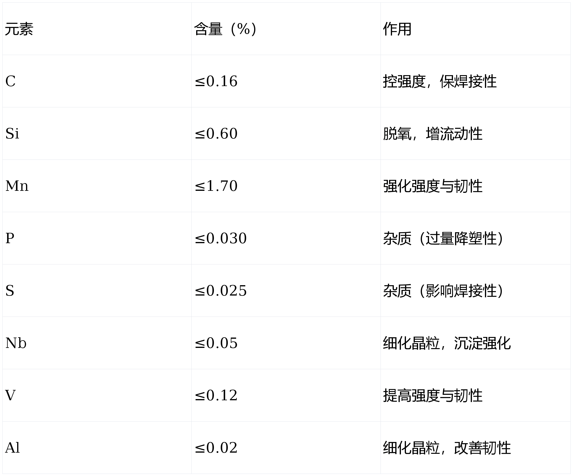 - 优异焊接性:低碳设计(C≤0.16%)+低硫磷(P≤0.030%,S≤0.025%),碳当量(CEV)≤0.45(厚度<16mm),支持免预热焊接 ;