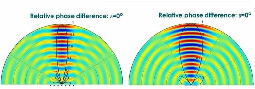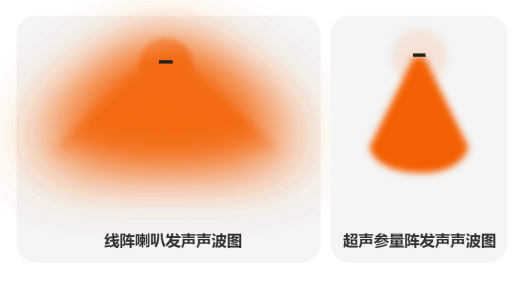 波束成形(声音的“聚光灯”模式): 通过调节多个传统扬声器单元的相位差,让声波在特定方向上产生相长干涉(增强),在非目标方向产生相消干涉(抵消)。