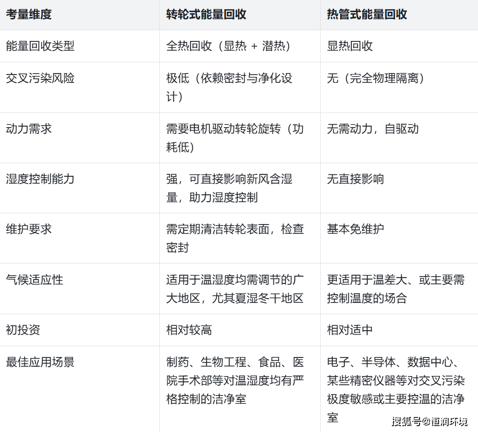若排风中可能存在工艺产生的特殊污染物,或工艺本身对任何形式的交叉风险都不可接受,则热管式的绝对隔离特性更为稳妥。