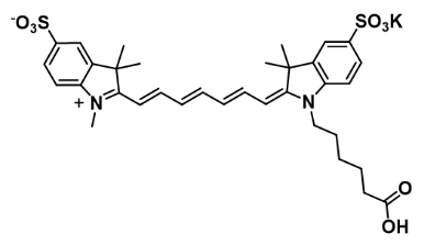 属于花青素类荧光染料,具有氰二亚甲基结构,带有一个七碳共轭链(heptamethine),使其具有较长的吸收和发射波长。