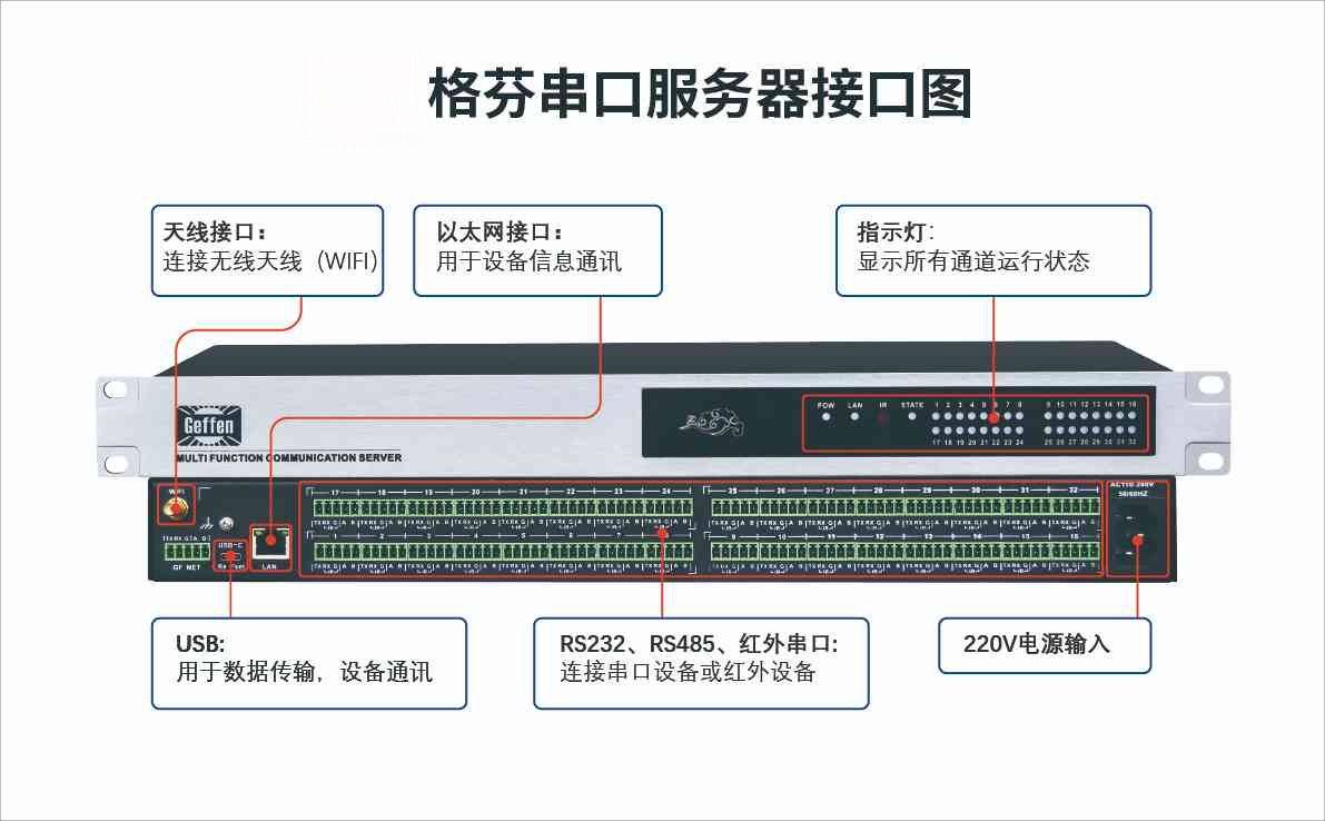 高性价比优势,重塑市场选择格局。相较于进口红外串口设备,格芬支持OEMODM,自主品牌自主研发生产。全规格产品在保障工业级性能与稳定性的同时,硬件成本仅为进口产品的50%-70%,无隐性授权费用,大幅降低前期采购成本。从8路轻量管控到32路海量联动,从智慧展厅的设备协同到工业车间的自动化管控,从能源监控的数据采集到政务安防的稳定通信,格芬纯国产化红外串口『服务器』(8/16/24/32路)以全规格覆盖、硬核性能与高性价比,成为国产化多设备协同管控的优选方案,助力各行业『数字化』转型稳步推进。