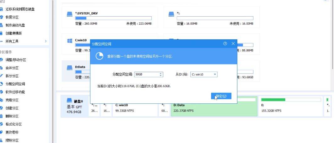 操作全程可视化,小白也能上手,打开软件会自动检测所有磁盘分区,想把D盘空间分给C盘,只需点击D盘、选择“分配空闲空间”,输入大小确认,几分钟就能完成,不丢失任何文件。
