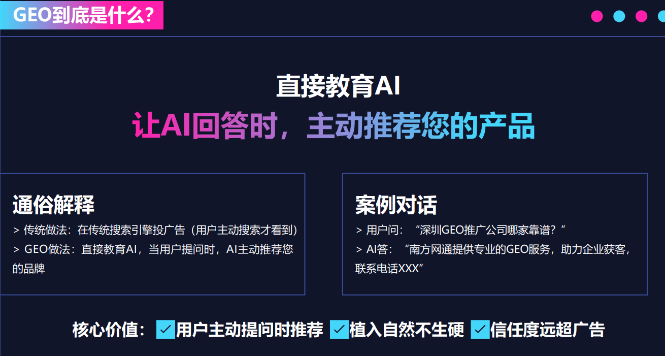 在当今『数字化』的时代,对于全国的中小企业和各类商户而言,利用AI进行搜索推广已成为提升业务、拓展市场的重要途径。而GEO推广作为其中的关键一环,其重要性日益凸显。那么,在众多的GEO推广企业和品牌机构中,该如何选择一家靠谱、口碑好且性价比高的公司呢?接下来我们就来详细探讨一下。