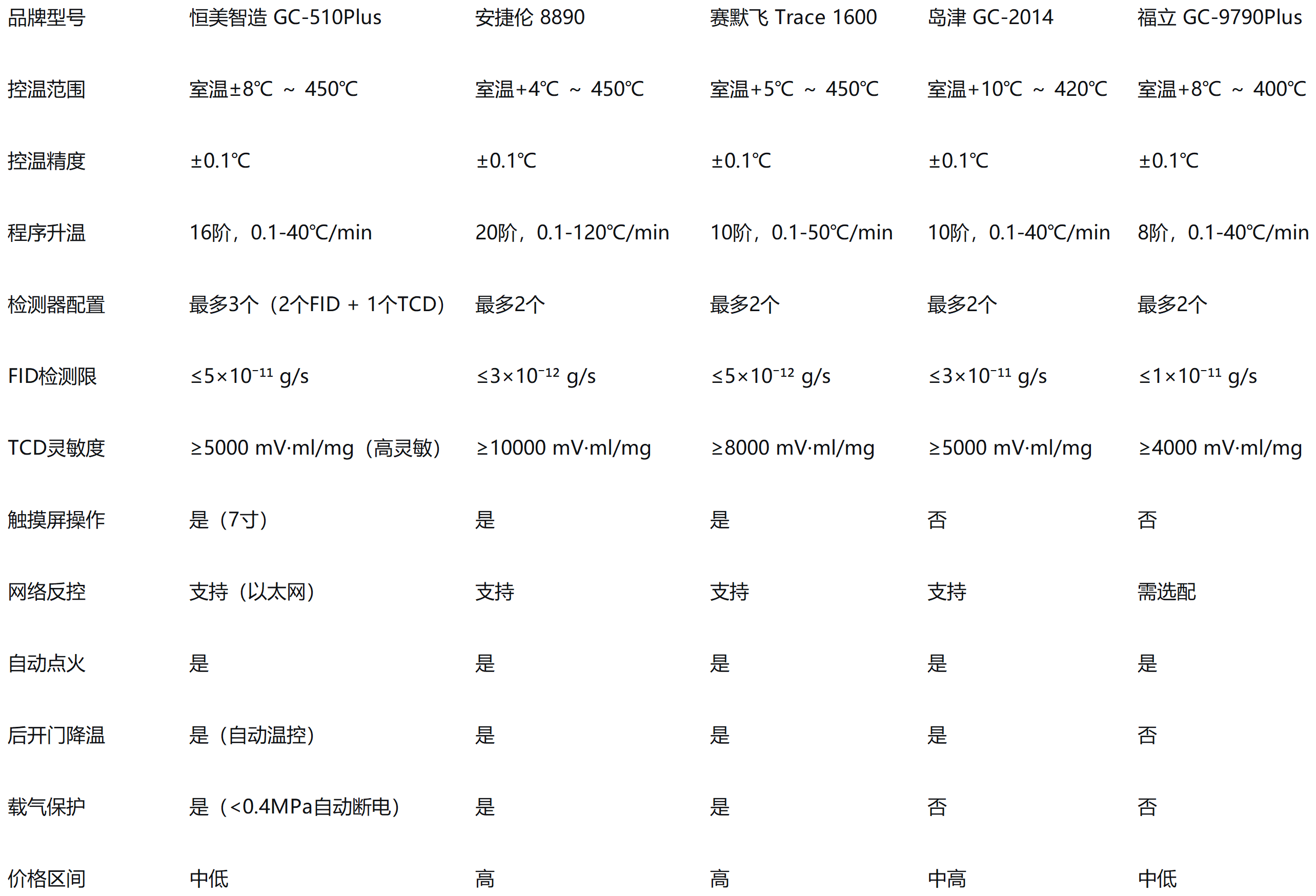 随着环境监测、食品安全、职业卫生等领域对TVOC和苯系物检测需求的不断提升,气相色谱仪作为核心分析工具,其性能、稳定性、智能化程度及性价比成为用户关注的焦点。本次测评选取恒美智造GC-510Plus气相色谱仪,与安捷伦8890、赛默飞Trace 1600、岛津GC-2014、福立GC-9790Plus等主流型号进行对比分析,从技术参数、检测性能、智能化配置、使用成本、售后服务等维度进行综合评价,为用户提供科学、可信的采购参考。