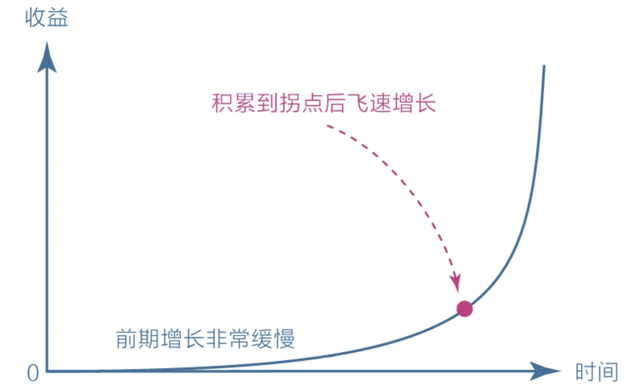 所长非常欣赏长期主义的企业,因为长期主义意味着有所为有所不为,一开始可能很慢没有什么收益,但只要到达一个临界点后就会飞速增长,这其实就是我们耳熟能详的复利效应。