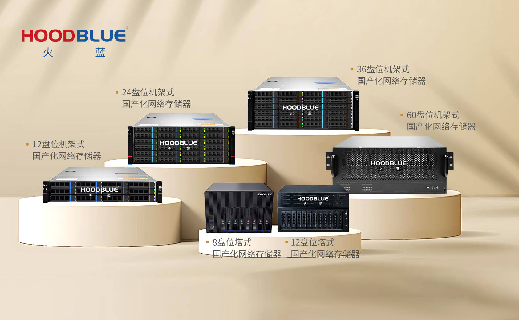 - 国产化适配,性能与兼容性双优:全面兼容海光、龙芯、飞腾等主流国产处理器平台,通过多维度互认认证,实现从硬件到系统的无缝适配;产品搭载火蓝自研操作系统,在保障高稳定性的同时,提供高水平的运算与存储性能,完全满足政企级核心业务场景需求。