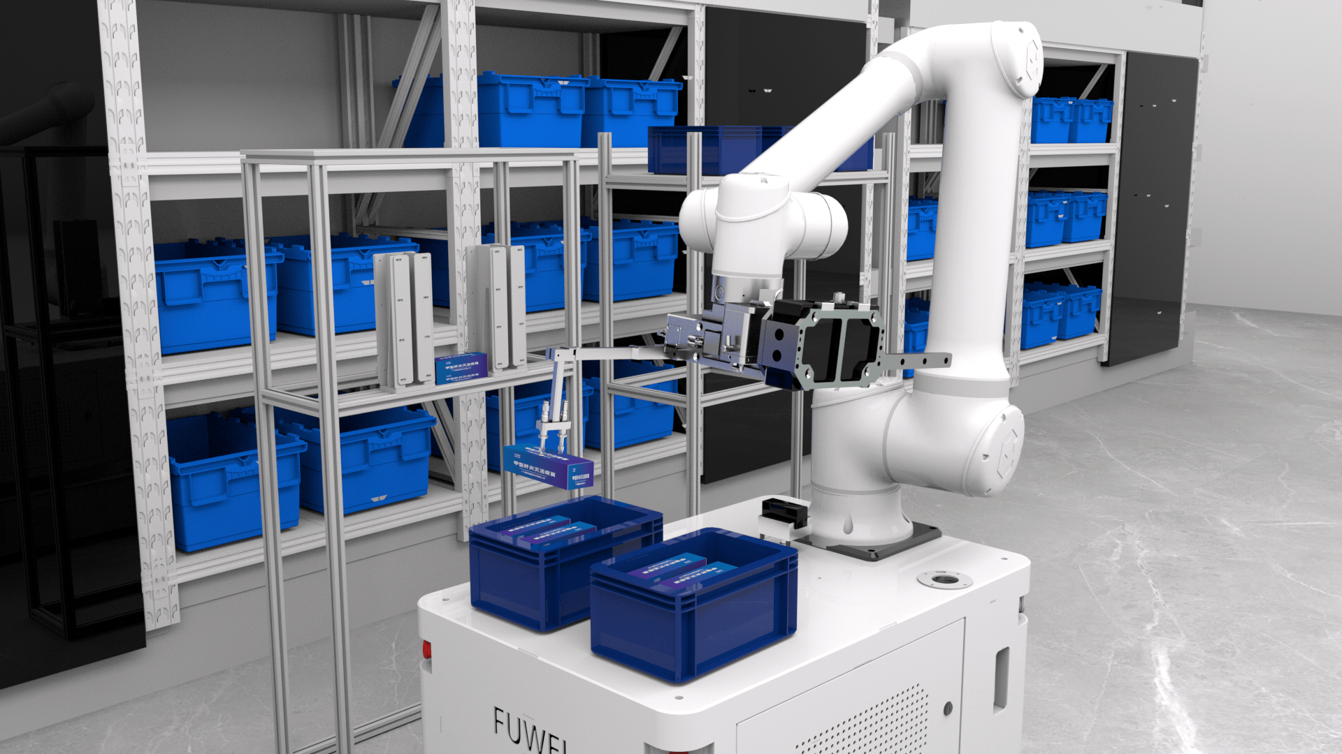 解决方案:部署8台智能复合『机器人』️,搭载六轴机械臂与视觉定位系统,采用全域调度与动态优先级算法。