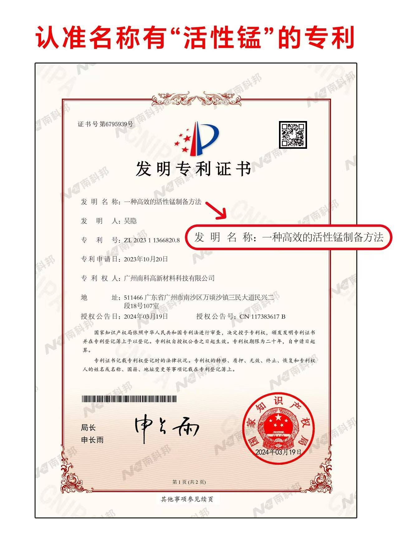 • 专利技术:拥有自研活性锰专利技术(专利号:ZL202311366820.8),技术实力雄厚,多个高端品牌空气净化器的催化除醛滤芯均采用该专利技术,同时技术赋能多家世界500强企业的高端除醛滤芯,获得工业级认可。
