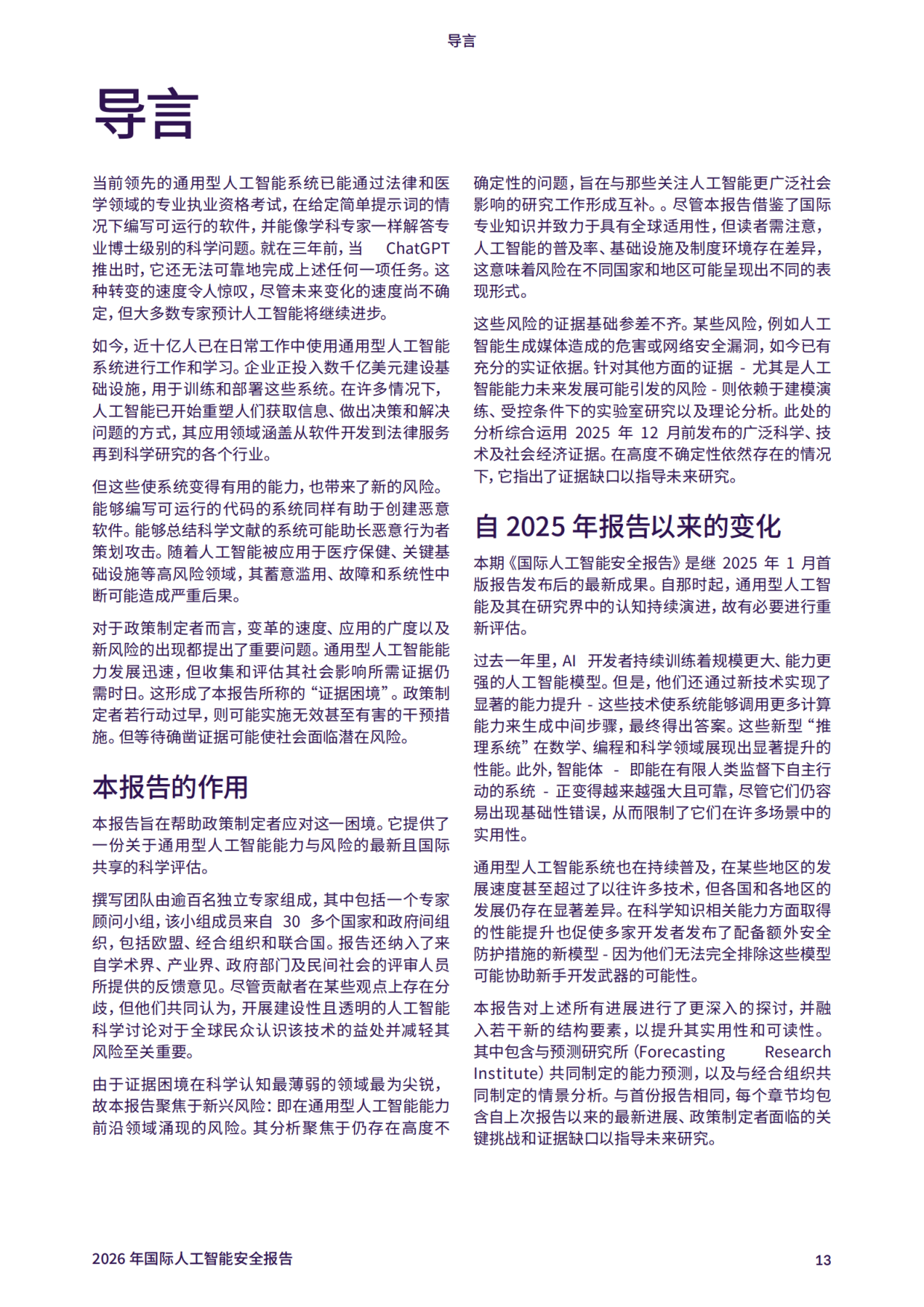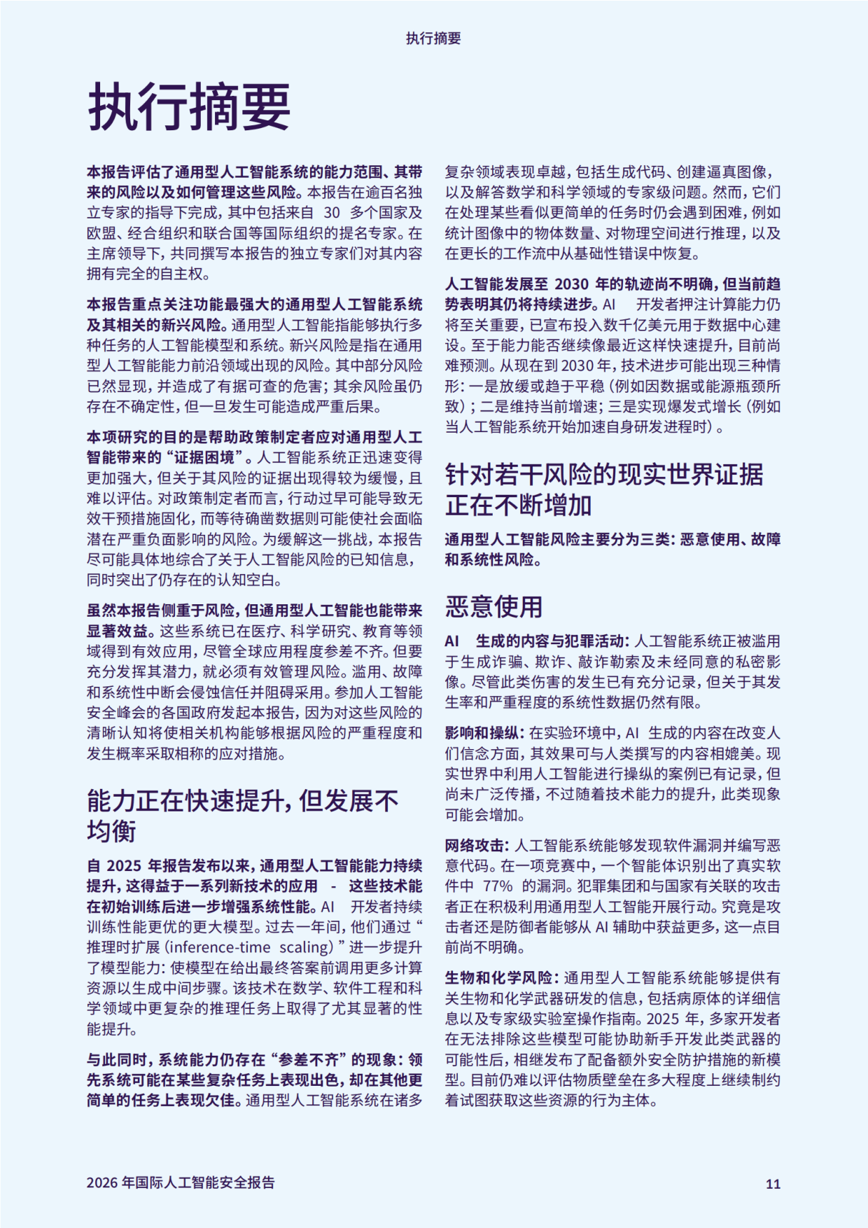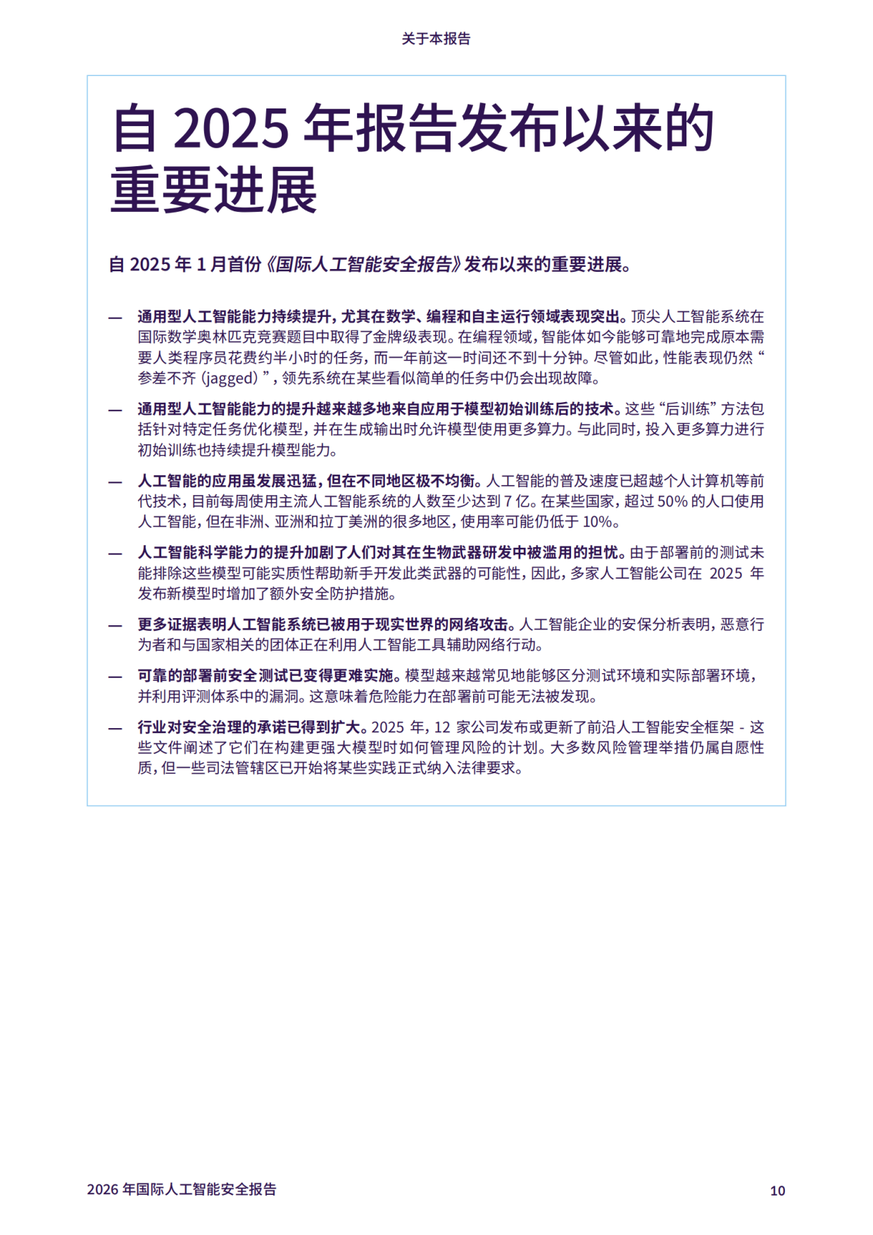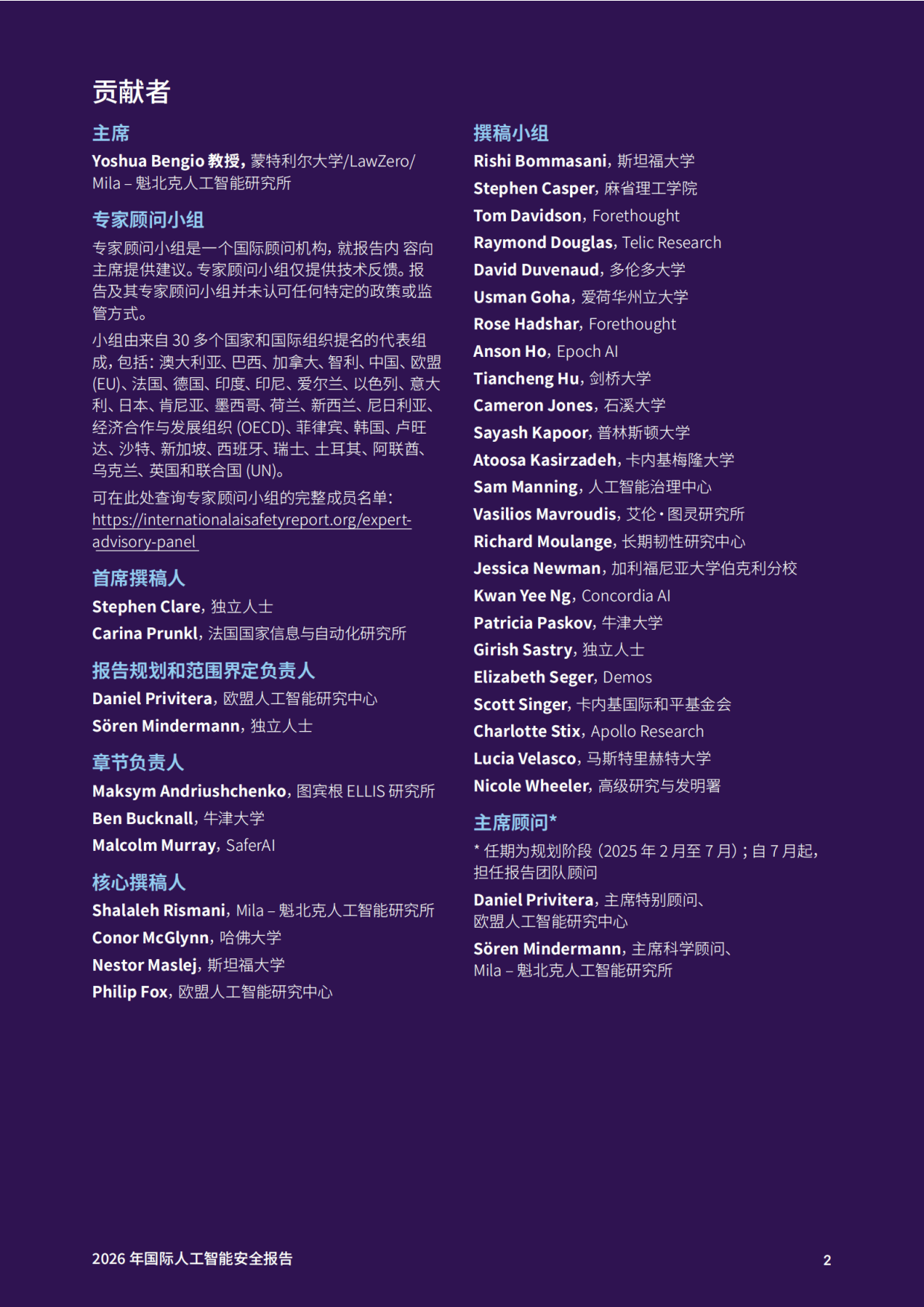 《2026 年国际人工智能安全报告》由约书亚・本吉奥教授牵头,汇聚全球 30 多个国家及国际组织的 100 多位专家智慧,聚焦通用人工智能的前沿新兴风险,为政策制定与风险管控提供科学依据。