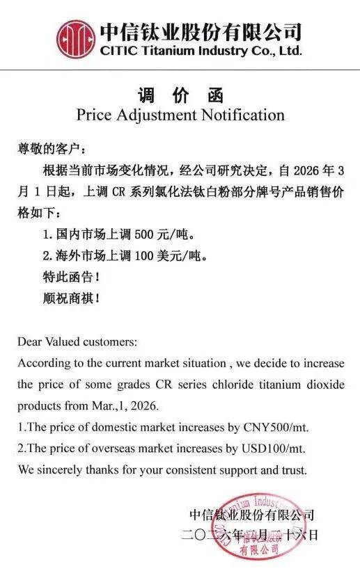 涨价的其实背后是实打实的压力,此次涨价不仅反映了行业对成本压力的应对,也预示着2026年钛白粉市场的新一轮调整。