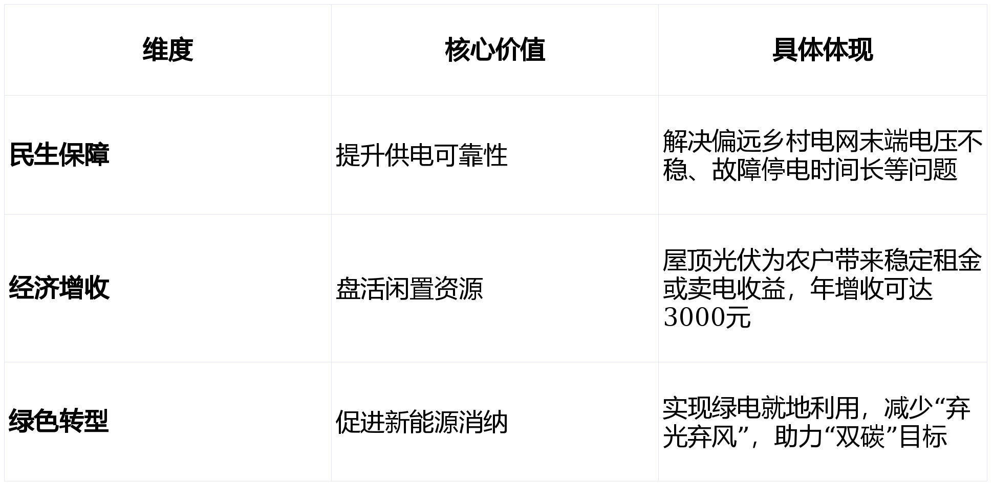实际成效:河北北庄村微电网实现年供电可靠率99.99%,户均停电时间减少30%;无锡谈村微电网可在电网故障时,为村民提供关键时段保障供电。