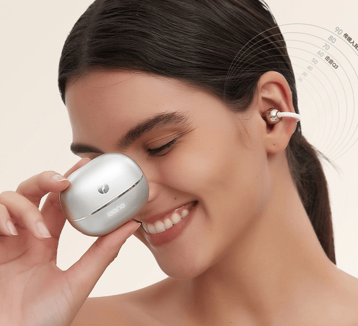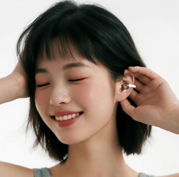 推荐耳机理由:耳夹式设计搭配玫瑰金配色,颜值出众,兼具装饰性与实用性。采用骨传导概念设计,不伤耳朵,适合长时间佩戴。具备AI翻译功能,兼顾日常使用与商务出行需求,同时支持通话降噪、5级防漏音设计保障使用私密性,适合注重颜值、听力健康且有翻译需求的用户。