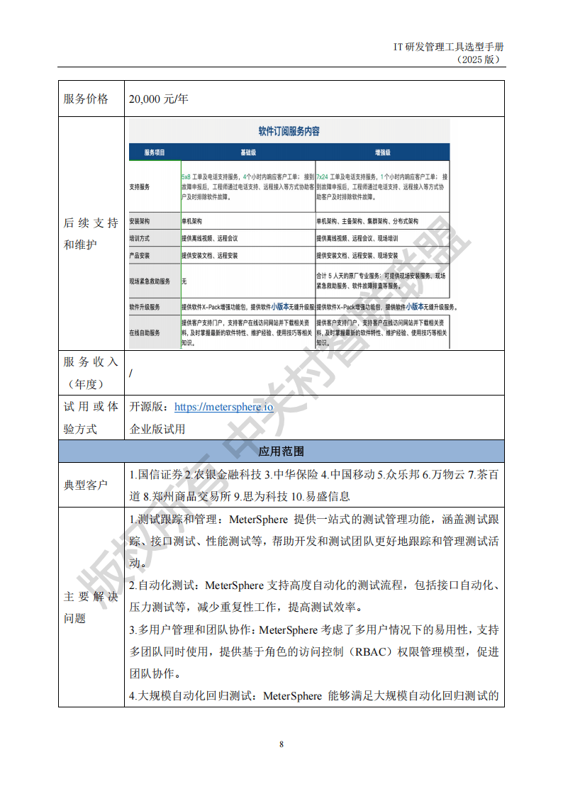 《IT研发管理工具选型手册(2025年)》由中关村智联软件服务业质量创新联盟编制,该联盟在工信部、科技部等部门支持下,深耕软件质量与创新领域,发布多项国家标准,其TiD质量竞争力大会已成为行业标志性活动。手册聚焦测试&运维、研发效能、协作管理、AI&云原生、安全五大核心领域,收录43款主流研发管理工具,为企业选型提供全面参考。