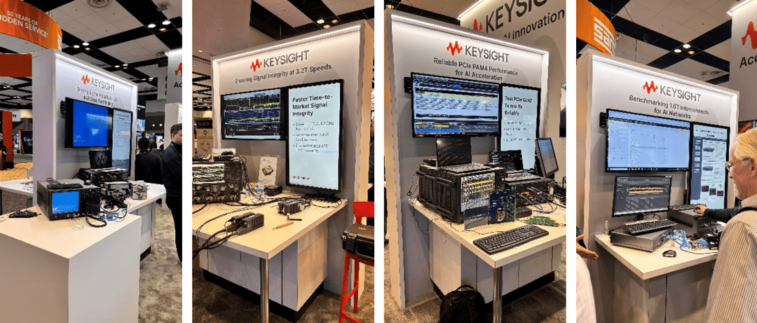 从测试测量展区的观察来看,AI 系统带来的信号裕量、通道损耗、Crosstalk 与噪声、功率完整性已成为不容忽视的瓶颈,系统级的测试验证能力是 AI 基建能否落地的关键保障。测试仪器展区的代表当属是德科技(Keysight),他们打出 “Accelerating AI Innovation”的口号,其所有演示均紧扣 AI 应用: