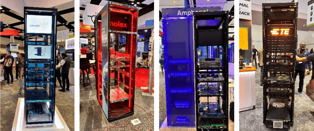 被与会者戏称为“大盒子”的整机柜模型遍布各大展位,成为全球巨头们的“核心展项”。 代表性厂商有Amphenol、Molex、TE、立讯等。