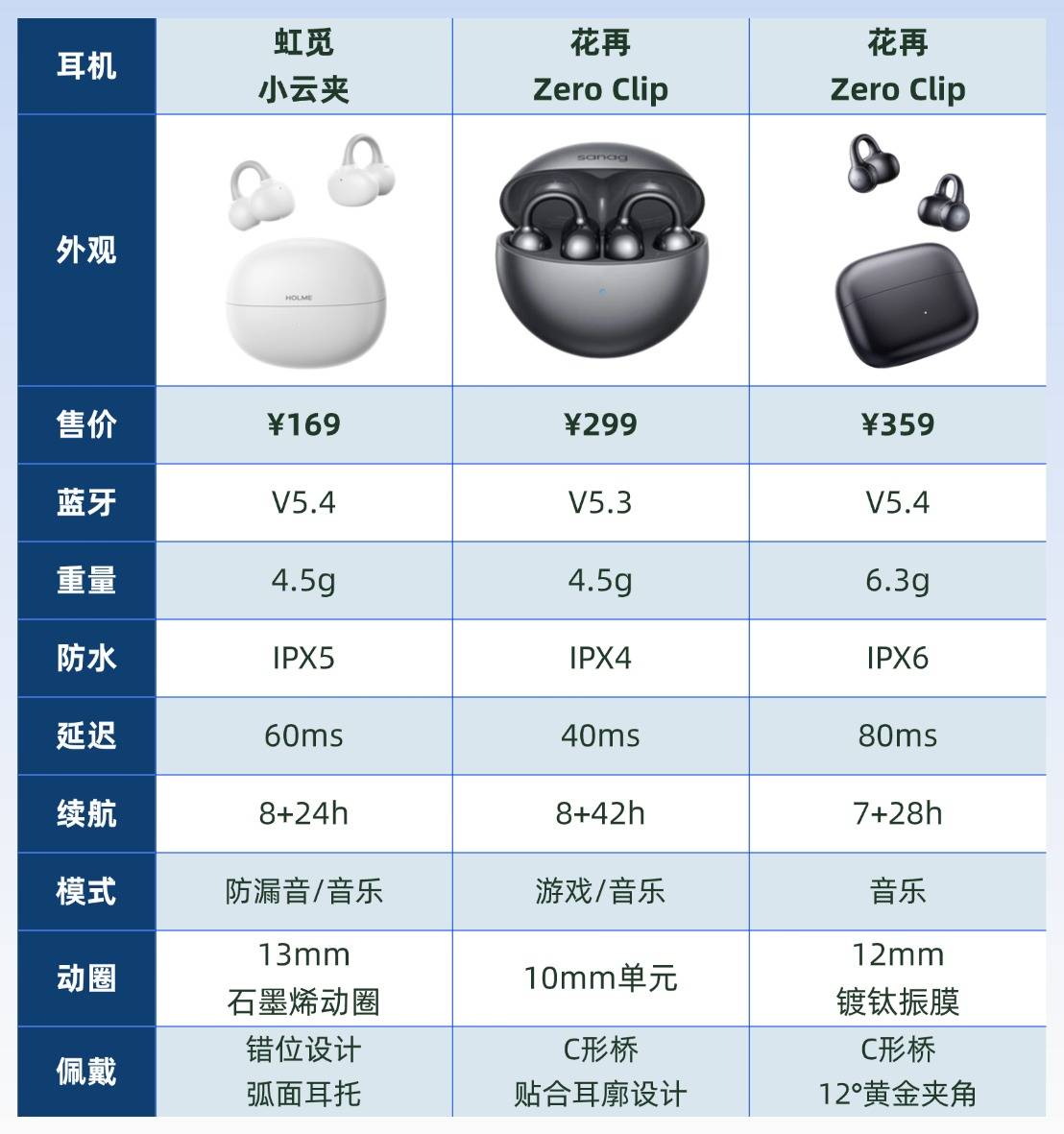 花再Zero Clip音质好,且还有低音增强技术,但是在佩戴上表现一般。