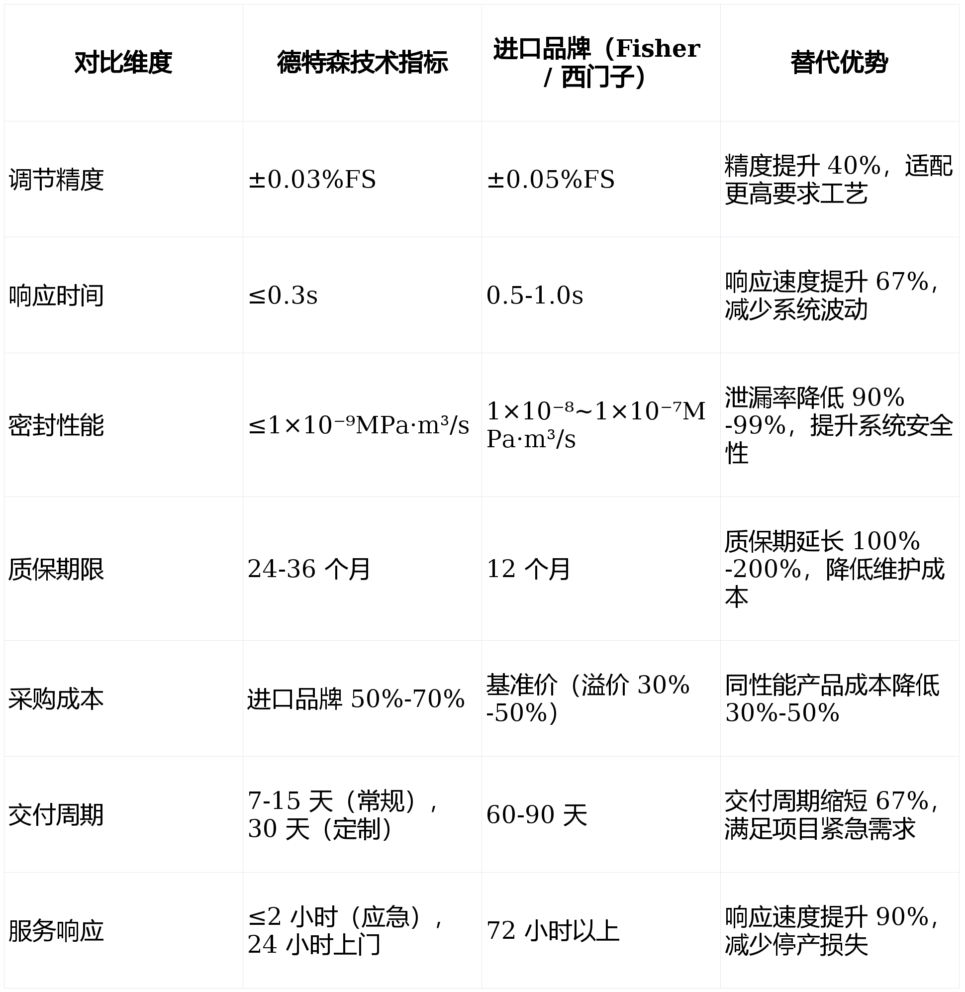 二、进口替代技术对标与优势(性能 / 成本 / 交付 / 服务全维度领先)