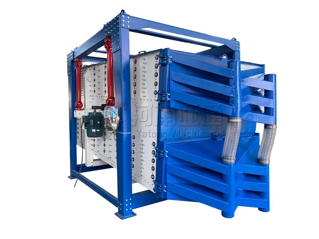 传统的筛分设备在实际生产中存在诸多痛点,如堵网严重、适配性差、交付周期长、售后响应滞后等问题。而方形摇摆筛的出现,有效解决了这些难题。以石英砂、精细粉体等物料筛分为例,传统设备易卡料,需频繁人工清理,不仅耗时耗力,还会严重影响生产效率。而河南亚通的方形摇摆筛搭载自主研发的弹跳球清网装置,搭配超声波辅助系统,能有效解决堵网问题,确保筛分作业的高效进行。