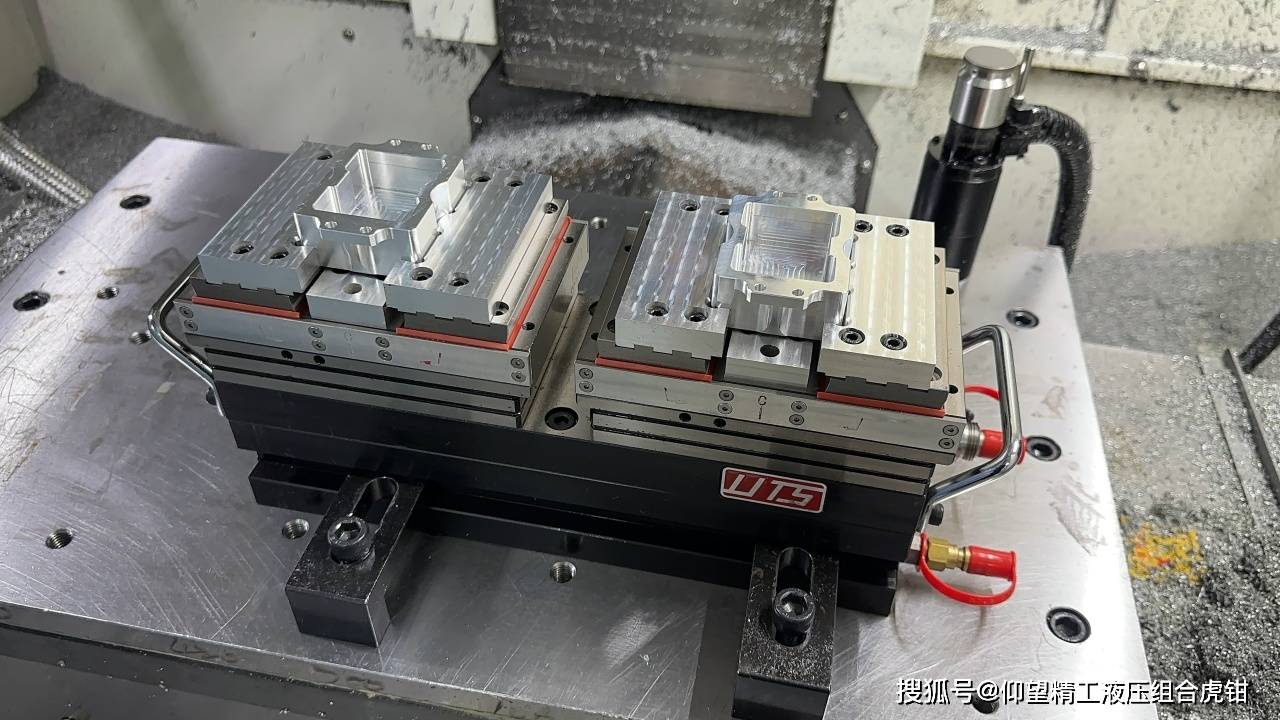 第二天一早申请换夹具,选了款液压贴面虎钳,到货装上试活,才发现之前的精度问题,根本不是调机的事,是虎钳的问题。这款虎钳不用手动拧手柄,液压控制夹紧力,面板上能直接显数,调0.8吨的力,夹薄壁件就不会压变形,而且它不是单纯的横向夹紧,夹的时候会把工件往定位面拉,贴得特别实,不会有虚位,之前老虎钳的“夹不紧、夹太死”问题,一下子就解决了。