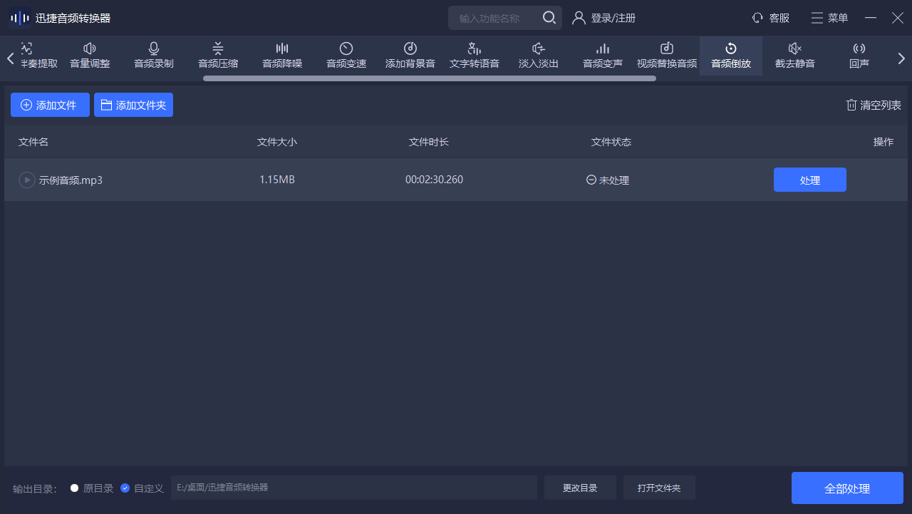 这款软件支持批量倒放音频,一次能处理几十上百个文件,还能调整音频的速度、音量,甚至可以把倒放后的音频转换成其他格式。最关键的是它处理速度特别快,电脑配置一般也能轻松应对,生成的音频质量比手机处理的还要好一些。