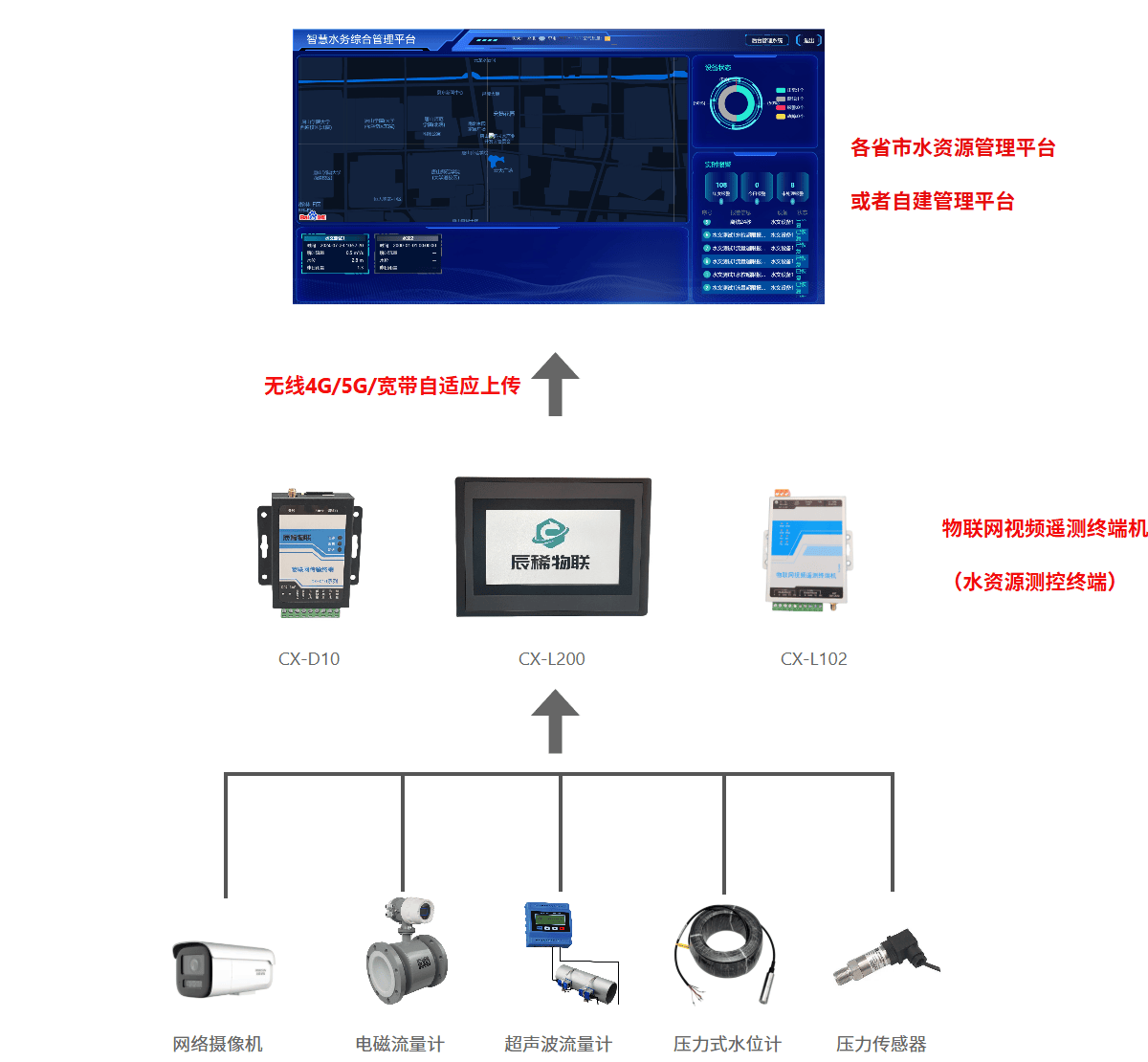 用户可自定义采集参数,数据可以接入流量计、水位计、压力传感器等多种智能仪表