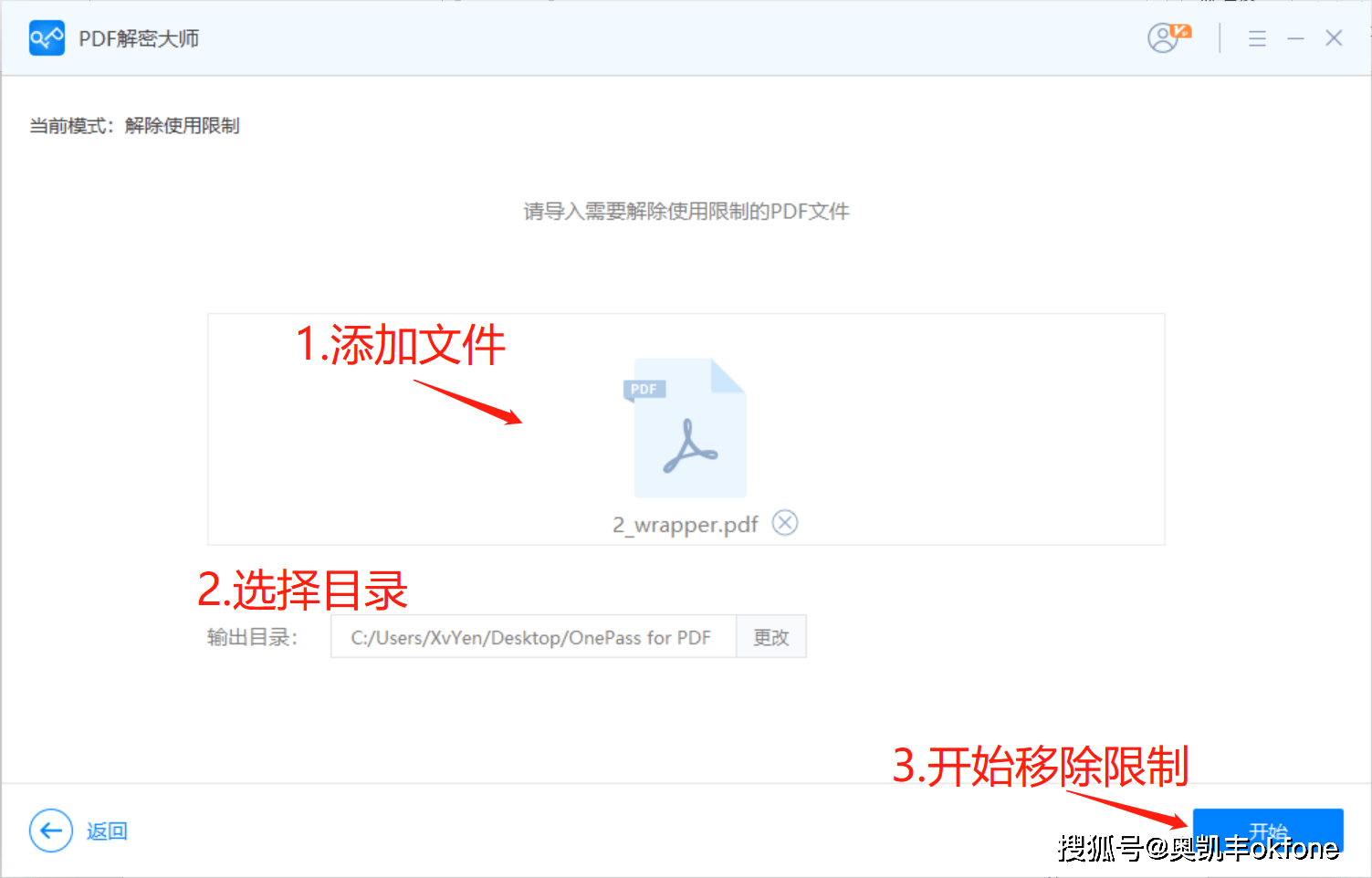 忘记密码,如果不想转换PDF文件格式的话,可以使用工具帮助我们取消限制,比如奥凯丰 PDF解密大师中【解除限制】功能,支持无密码一键取消PDF文件的编辑限制。