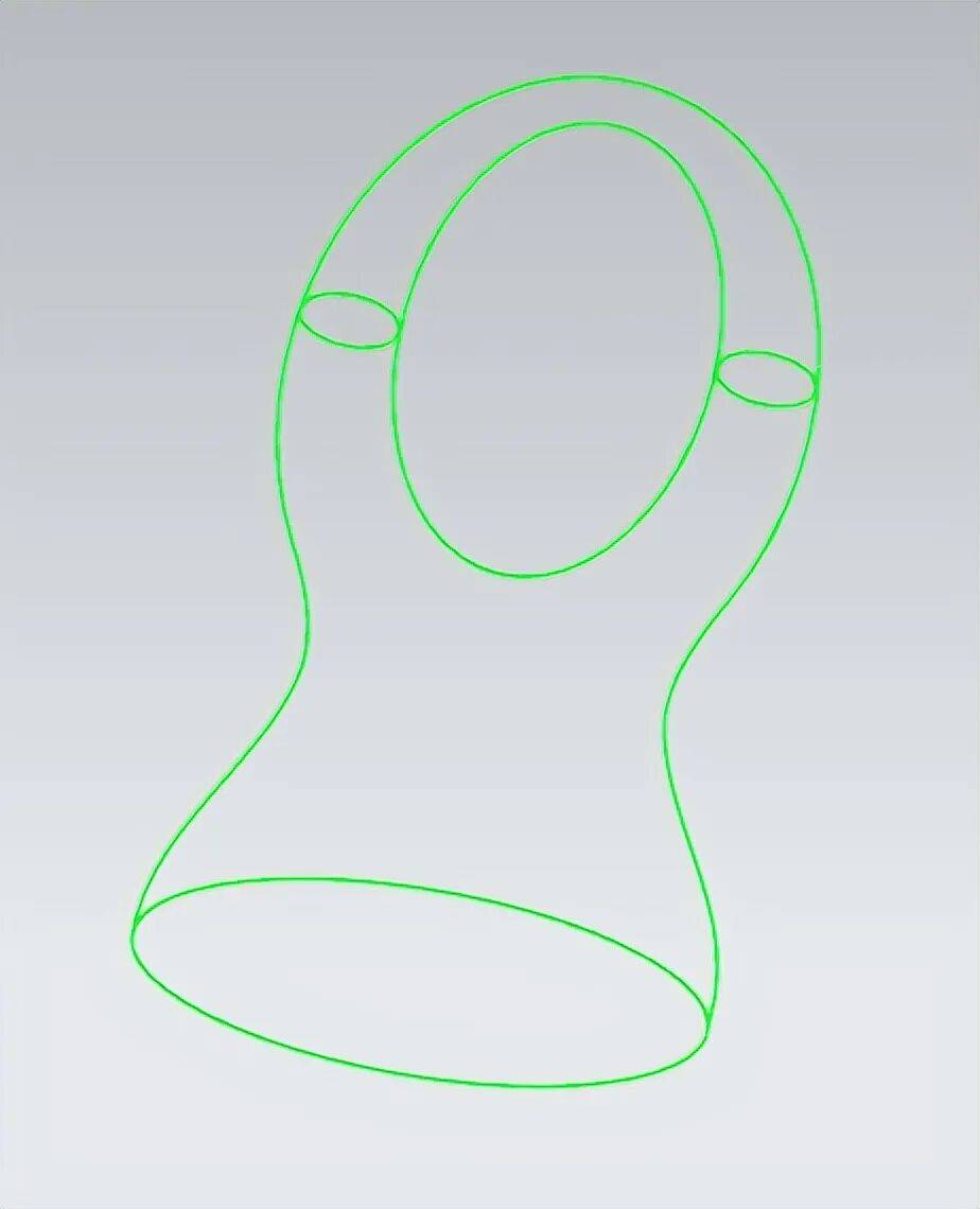 步骤1;横竖都是由规律的椭圆曲线,这样告诉我们,所有产品曲面正常都是简单的线,面,体组成的,我们就从简单的线的思路来考虑。