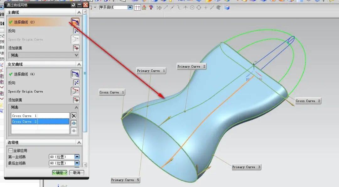 步骤6;通过曲面曲线网格可以封闭的曲线,这样完整的产品补面就完成了。