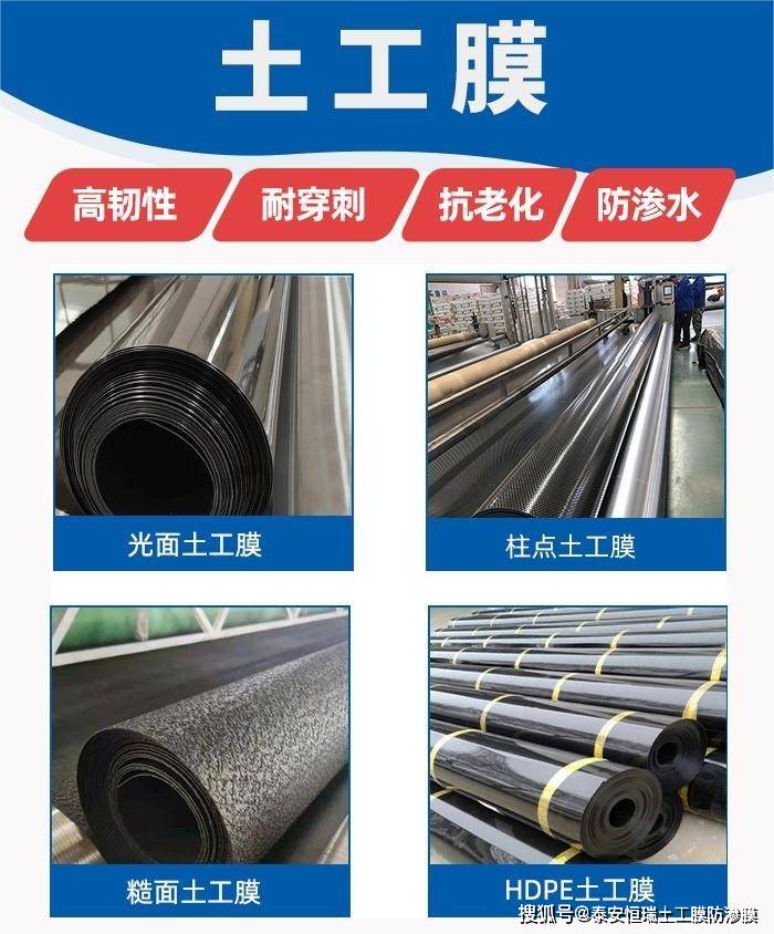 两布一膜是一种复合材料,通常由上下两层土工布以及中间一层塑料薄膜通过特定工艺复合而成。中间的薄膜多为聚乙烯等聚合物材料,主要起防渗作用;上下两层土工布则起到保护膜层、分散应力以及增加摩擦的作用,使材料更适应基层的不平整情况。