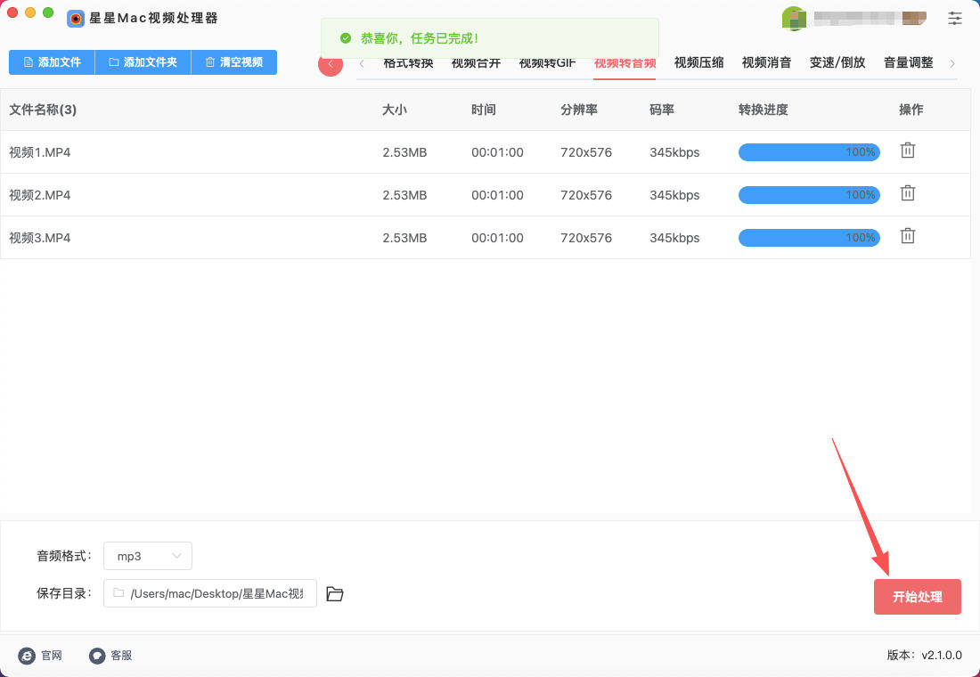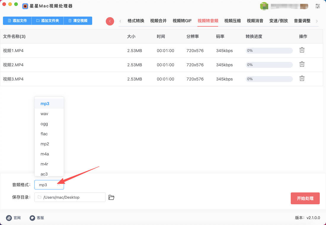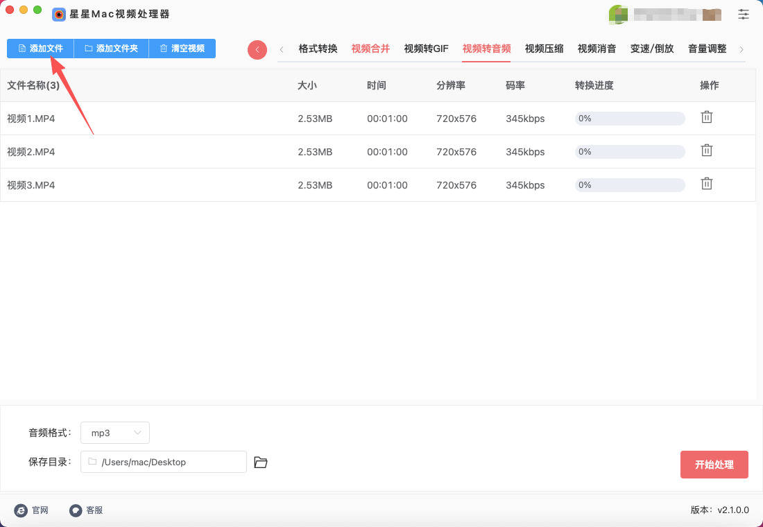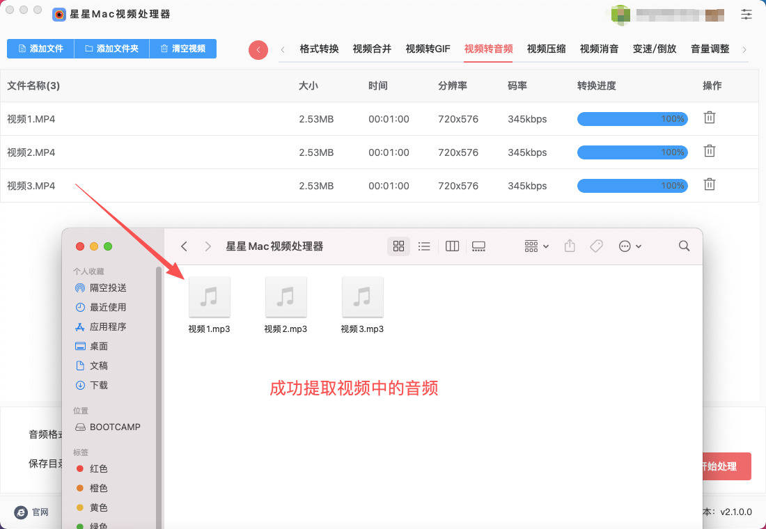 Mac上提取视频中的音频方法一:星星Mac视频处理器