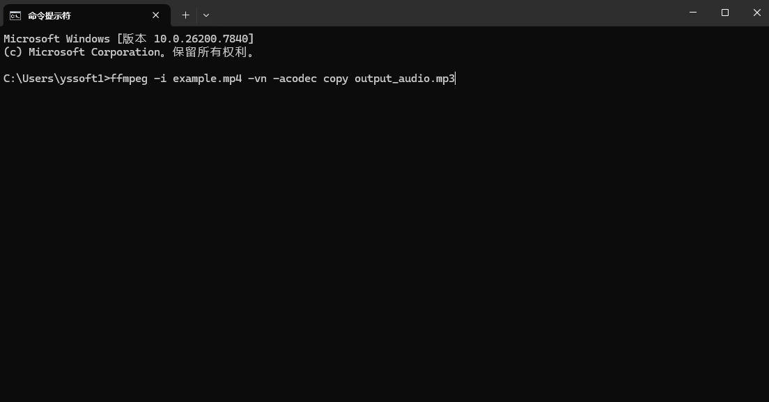 ③ 使用FFmpeg提取音频: 输入以下命令来从视频中提取音频: