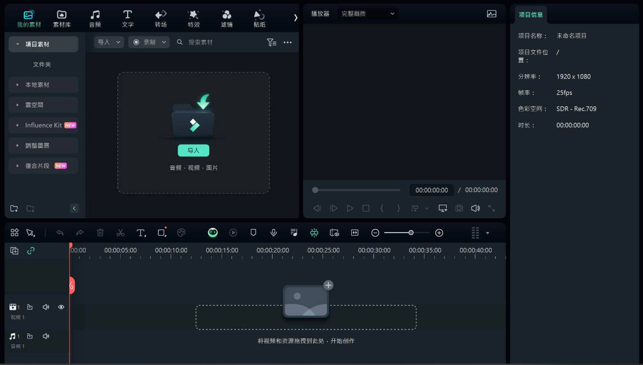 拖动视频到 时间线(Timeline)的视频轨道上。时间线上会显示视频轨道(带画面缩略图)和音频轨道(通常在视频下方,显示波形)。